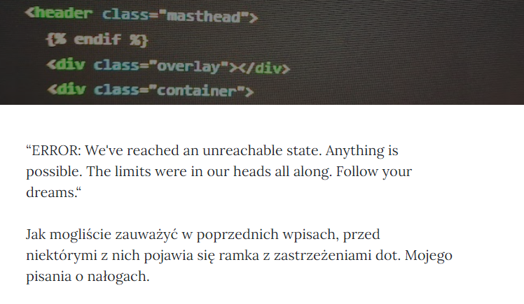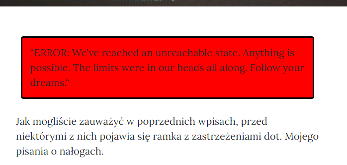 Jak mogliście zauważyć w poprzednich wpisach, przed niektórymi z nich pojawia się ramka z zastrzeżeniami dot. Mojego pisania o nałogach.