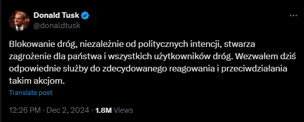 Bo dlaczego tylko blokowanie dróg przez Ostatnie Pokolenie zasługuje na post w mediach społecznościowych? Czy odbywające się w tym samym czasie blokady dróg przez rolników,, niezależnie od politycznych intencji, nie stwarzają zagrożenie dla państwa i wszystkich użytkowników dróg?