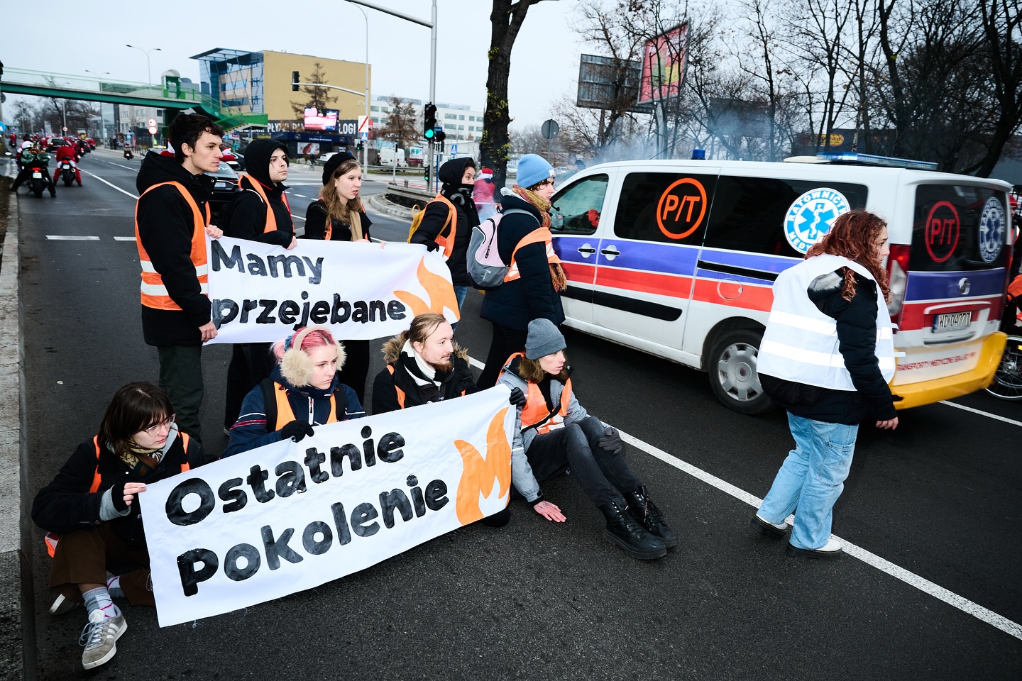 Jak widać, karetki jednak przejeżdżały. fot. Ostatnie Pokolenie